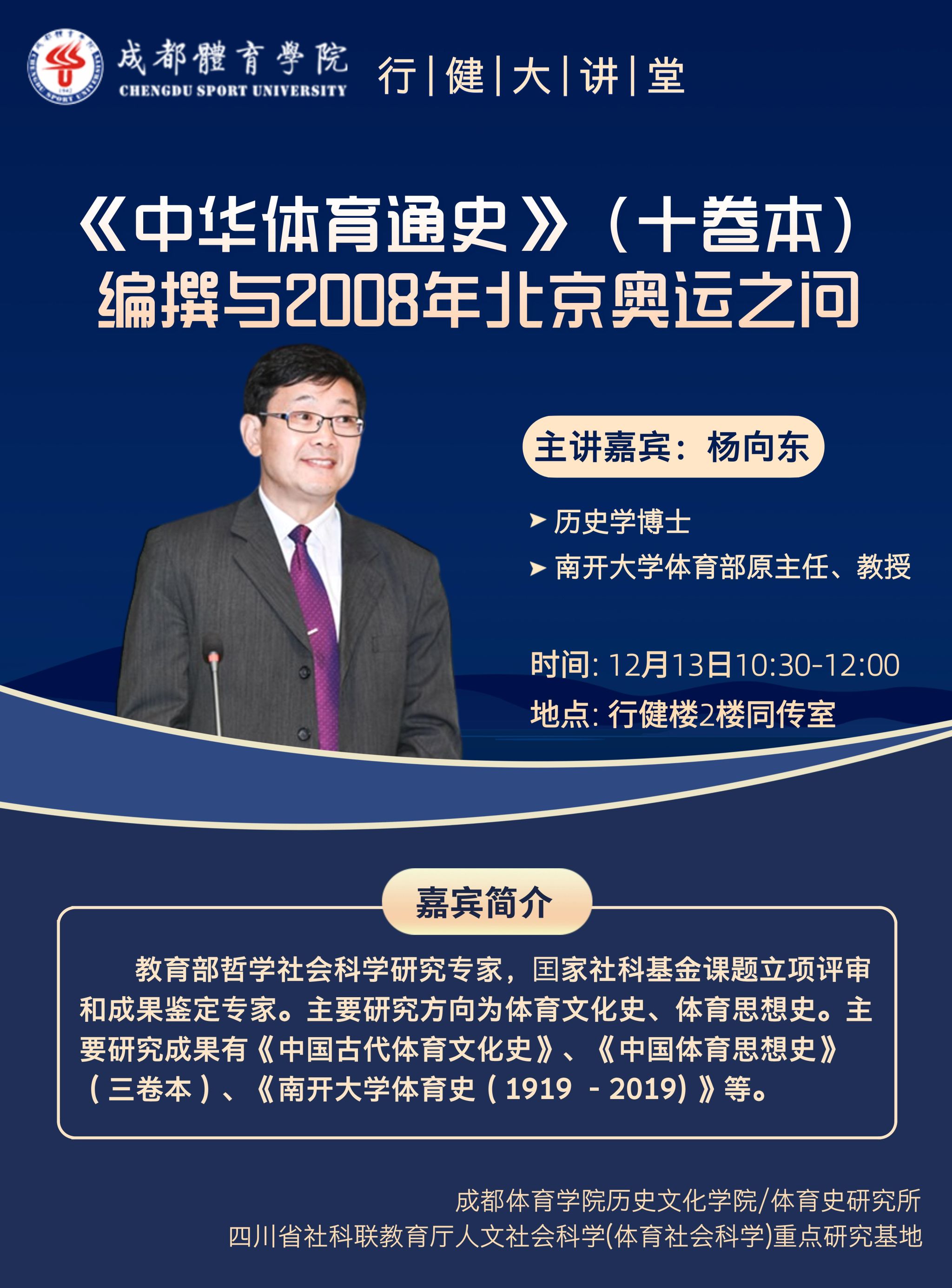 行健大讲堂系列讲座——《中华体育通史》(十卷本)编撰与2008年北京奥运之问