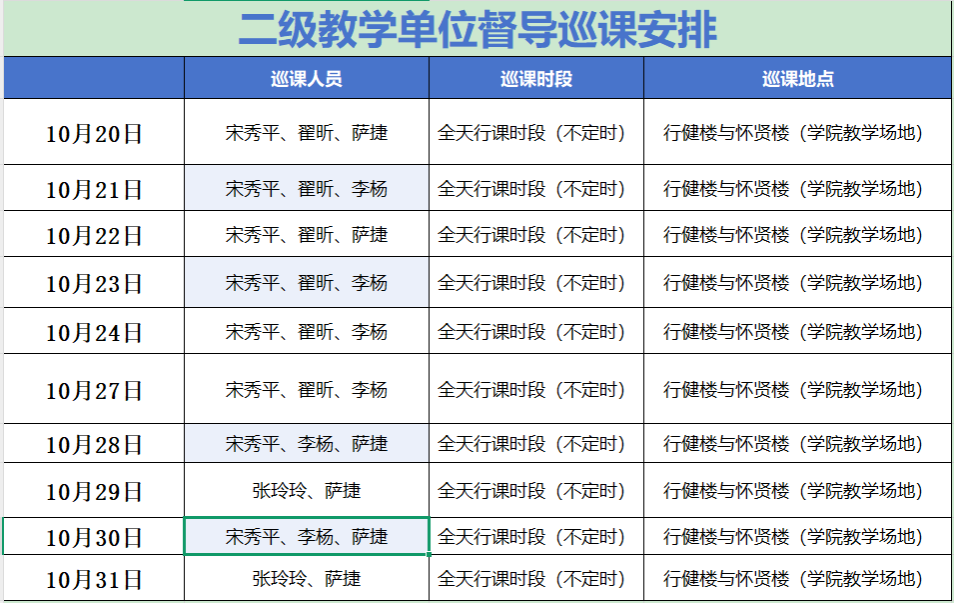 1.由于国庆放假,本月教学运行周期(1-8日放假,其中11日周六,为调休补课)。学院教学情况整体良好,井然有序。